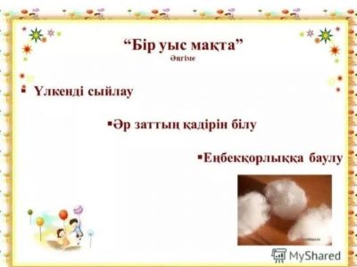 Ы.Алтынсариннің 180- жыл мерейтойына орай, мектебімізде 5- сынып оқушыларымен "Бір уыс мақта" ертегісінен үзінді қойылым көрсетілді. Жауапты: Кітапханашы Жумабекова Ж.Е.
